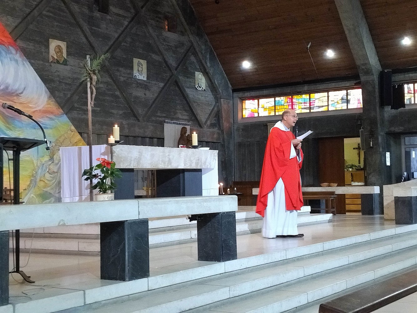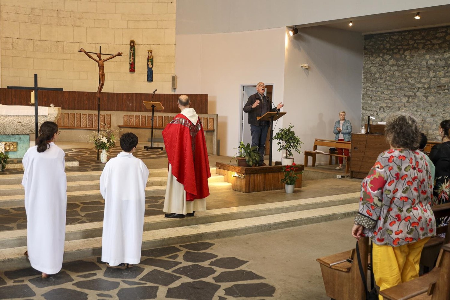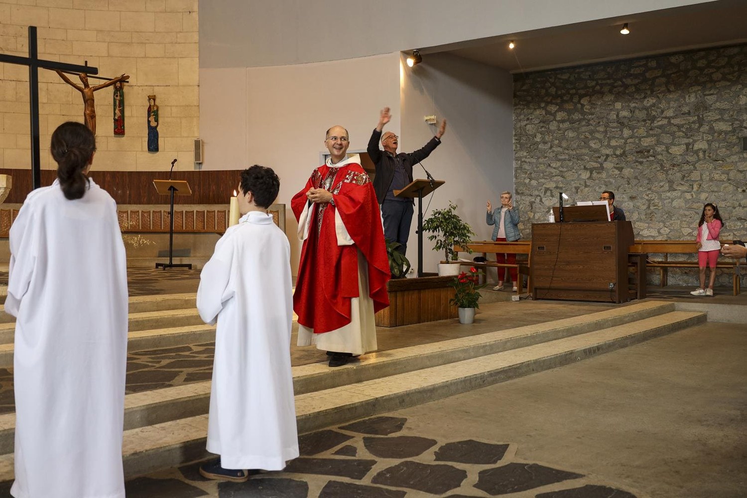La collecte organisée a permis de lui offrir une étole brodée du Christ en gloire qui se situe dans le chœur de Saint-Joseph et un chèque qu'il pourra utiliser pour aménager son nouveau logement.