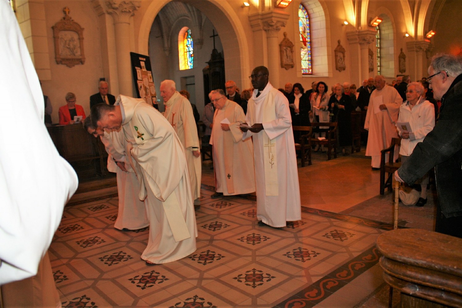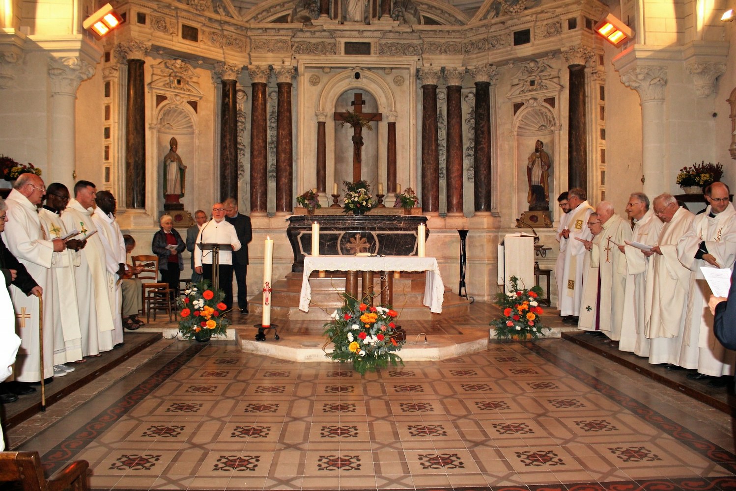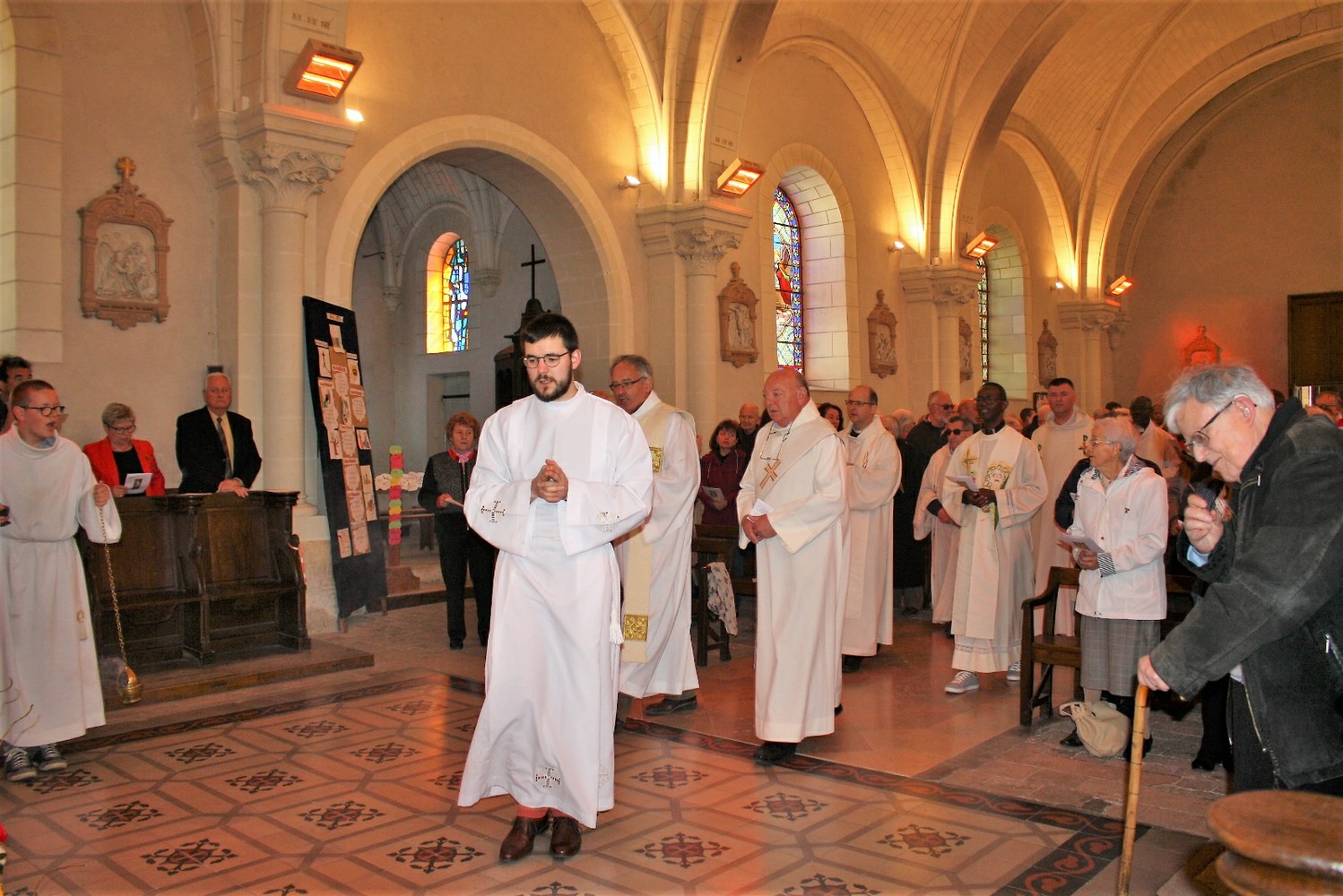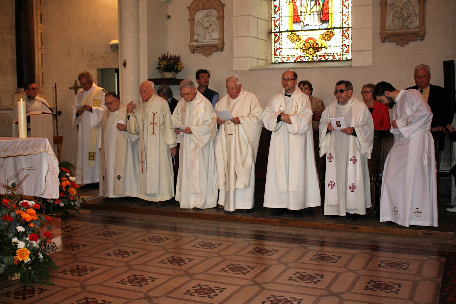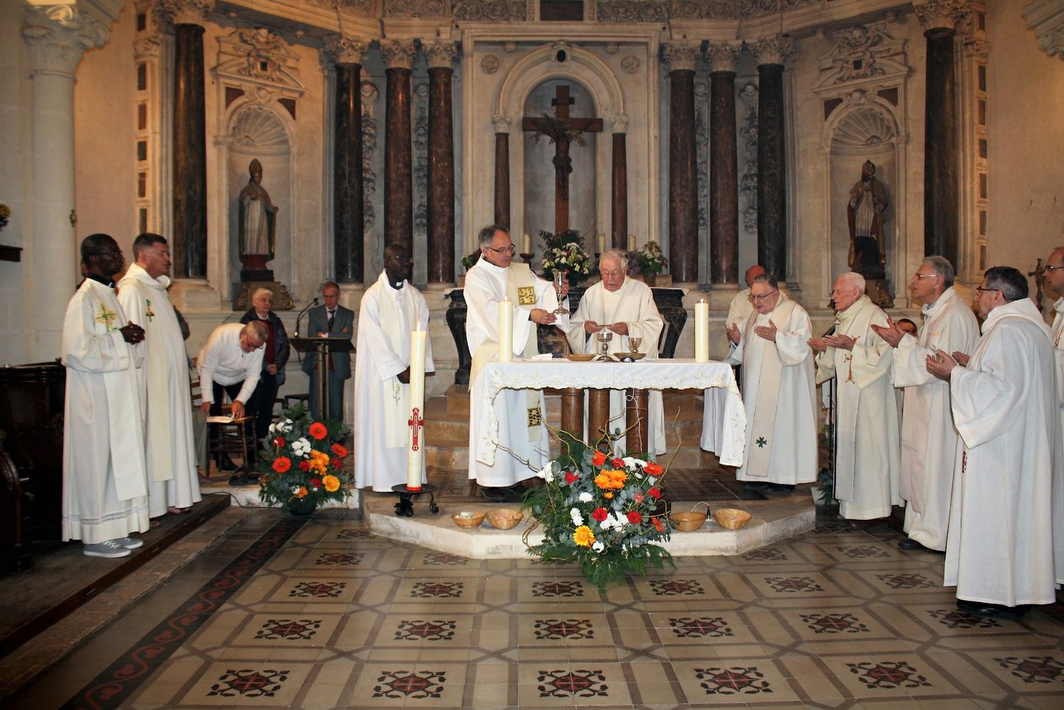 Amis, anciens élèves et anciens enseignants de Notre-Dame des Aydes, paroissiens du secteur d’Herbault, sans oublier ses deux sœurs, se sont retrouvés le samedi 27 avril autour du P. Claude Picard afin de rendre grâce pour ses soixante-dix ans au service de l’Église. Plusieurs prêtres et diacres étaient également présents. Parmi eux, le père Pierre Cabarat qui fut élève à Notre-Dame avant de devenir confrère du jubilaire, en a rappelé dans l’homélie les différentes responsabilités : chef d’établissement, professeur, catéchète, chef d’entreprise et bâtisseur. « Un ministère de prêtre ne se limite pas au culte. Dans de nombreuses réunions, par votre présence, votre questionnement, vous nous aidiez, parfois nous forciez, à comprendre le sens de telle ou telle décision. Votre désir d’être apôtre du Seigneur est toujours intact. Vous cherchez à comprendre ce monde, à l’aimer pour trouver la parole la plus ajustée possible pour que nous puissions voir ce qui demeure invisible ». À la fin de la messe, le P. Rodrigue Bissi, curé du nouveau secteur paroissial d’Onzain – Herbault a dit avec émotion son admiration pour « soixante-dix ans de sacerdoce à la suite du Christ, soixante-dix ans au service de l’Église ; plus de vingt-cinq ans au service de l’éducation, de la jeunesse. Nous pouvons aussi rendre grâce pour un plus de vingt-cinq ans au service d’Herbault. Merci à vous, Père Claude Picard, pour ce beau témoignage et pour votre exemple ».
