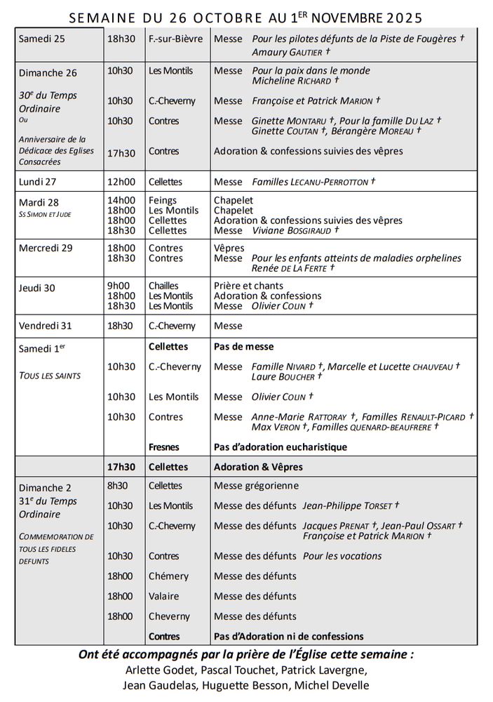 Voici le planning des messes de cette semaine